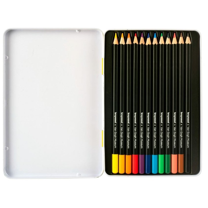 Bruynzeel bojice iz serije Van Gogh Museum izvrstan su alat za kreativno stvaranje. Set pakiran je u čvrstu metalnu kutiju s poznatom slikom suncokreta, koja štiti olovke od udaraca i oštećenja - tako da ih možete sigurno nositi sa sobom bilo gdje. Bojice iz serije Van Gogh Museum opremljene su čvrstom olovom od 2,9 mm koja sadrži visokokvalitetne pigmente koji ostavljaju jasan trag te tako zadovoljavaju potrebe i najzahtjevnijih umjetnika. Nijanse se lako međusobno miješaju. Sve Bruynzeel olovke ne sadrže gluten i pažljivo su izrađene od drva provjerenog podrijetla. Bojice su dvostruko zalijepljene, tako da su ekstra čvrste i mogućnost lomljenja olova u boji je minimalna.
