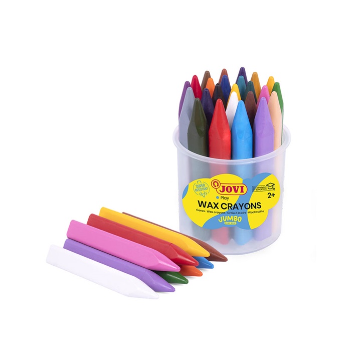 Trokutaste voštane olovke JOVI napravljene su za djecu koja vole slikati i trebaju pouzdan alat koji se neće prljati i neće se slomiti. Njihove vesele i jarke boje oduševit će ne samo djecu već i odrasle. Trokutasti dizajn bojica idealan je za dječje ruke - ne gužvaju se i ne padaju na pod. S voštanim bojicama vaša će djeca naučiti crtati glatke, pravilne linije gdje bojice lijepo klize po papiru. Osim toga, slikanje s njima je ugodno iskustvo - ne prljaju ruke i jako dugo traju jer je cijela površina bojice izrađena od voska u boji. JOVI bojice su savršen izbor za male umjetnike. Oživite svoju kreativnost u boji uz JOVI voštane bojice - sve bez većih alergena!