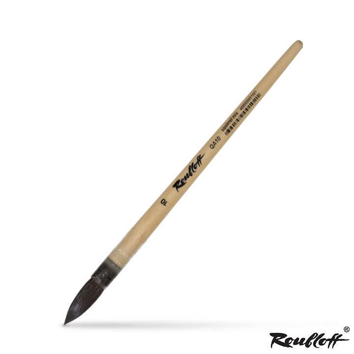 Okrugli kist za slikanje Roubloff iz serije QA10 ima tamno smedja napravljena od mješavine sintetičke i prirodne dlake vjeverice, kratku lakiranu dršku napravljenu od drva breze, držač vlakana je plastičan. Pogodan je za akvarel, gvaš i tempere. Dostupan je u različitim veličinama.
